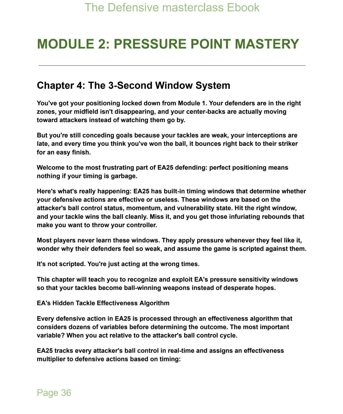 1. EA25 Technical Disclaimer "This guide is based on gameplay analysis and observed patterns in EA FC 25. EA Sports has not officially confirmed all technical mechanics described herein. Techniques are based on extensive testing and community research."